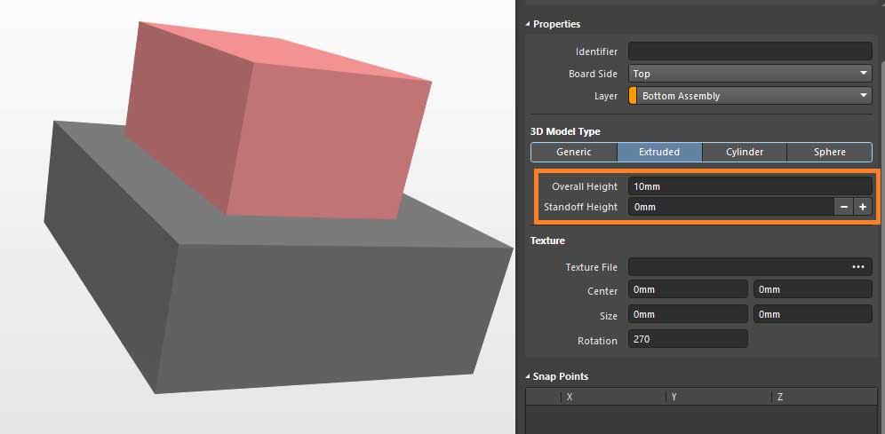 And then if you may need to set appropiate Height and standoff height to 3D Body to level it up, also assign different colour to better visibility.