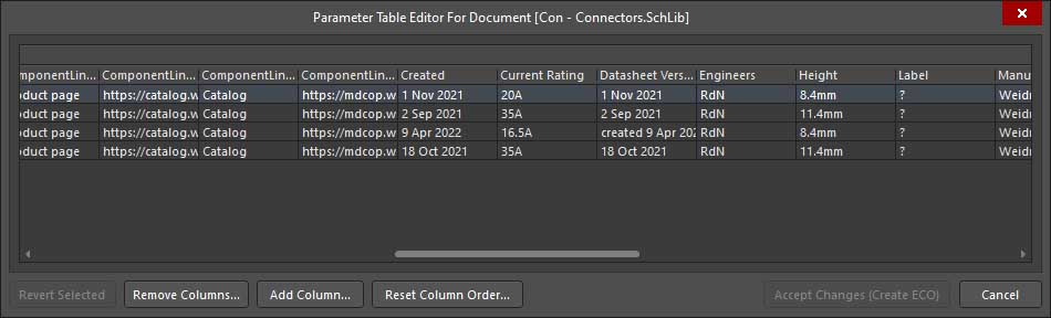 To add a new parameter click on the Add column button. However, if the parameter exists on one of the components, the column will already be there and you can change the value.