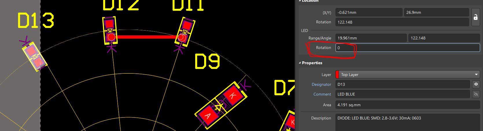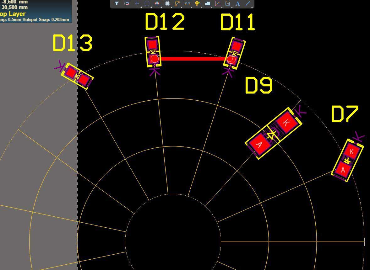How to create an auxiliary arc on which to place LEDs. I was able to create such auxiliary lines with the guide manager, but I don't know how to make an arc and arrange the LEDs