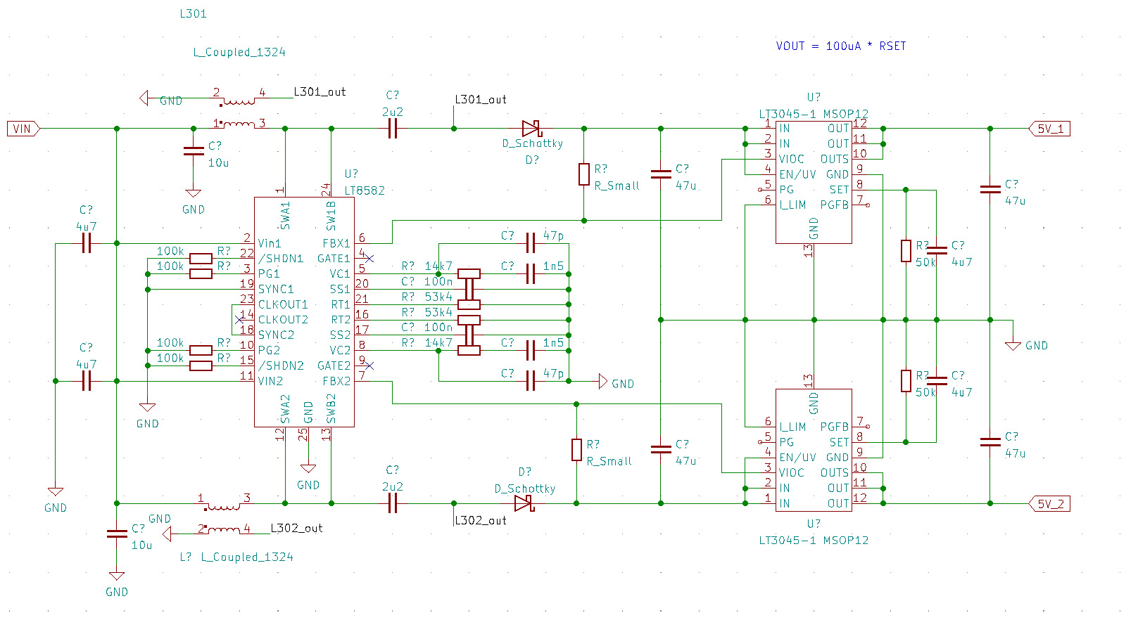 It's my first attempt at designing SMPS. I have studied the datasheet for LT8582, LT3045-1, and LT3094 and came up with those two: