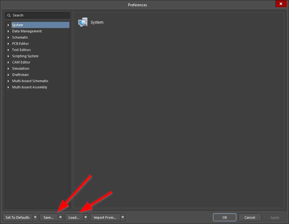 Altium allows you to save and restore the settings to a file.