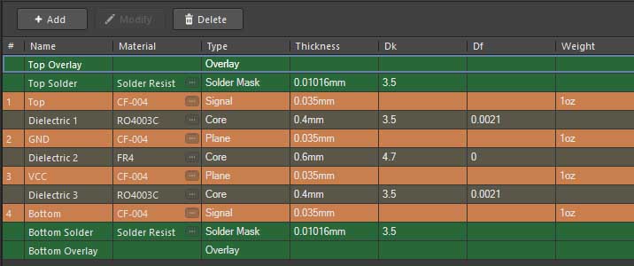 I can't see where the layers are signal or plane in the Layer Stack Manager.