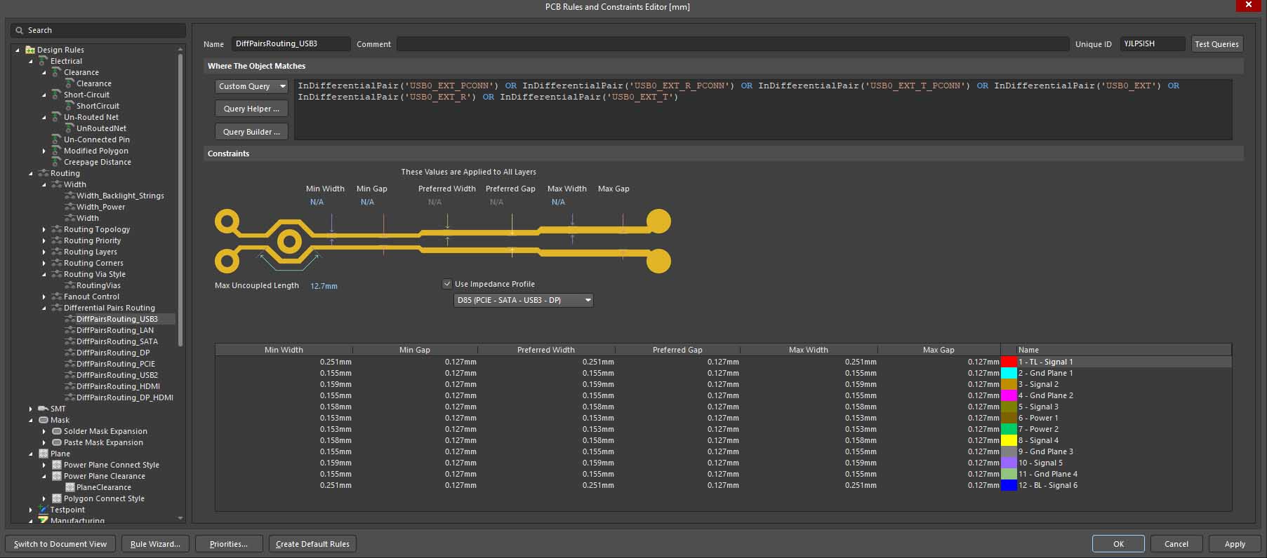 The screenshot I showed is Altium default and I do not do differential pairs.