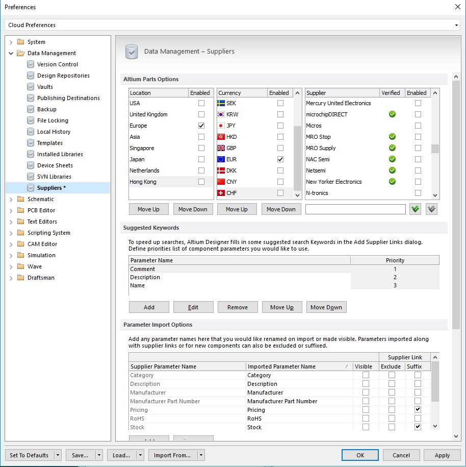 Some very important suppliers are missing for Europe, such as Mouser or Digikey.