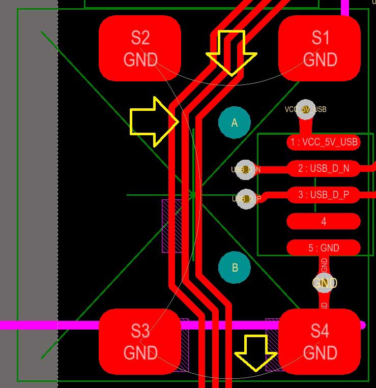Attached is a miniUSB connector, it comes with 4 pads S1, S2, S3, and S4, as you know these pads are connected to each other through metallic body. Regarding to this connector I got 2 questions: