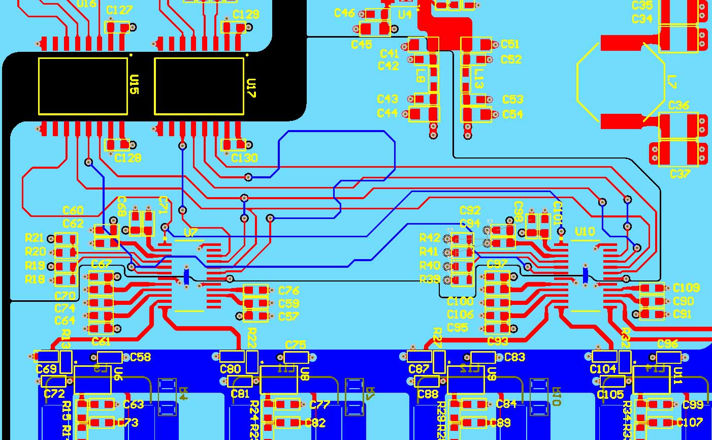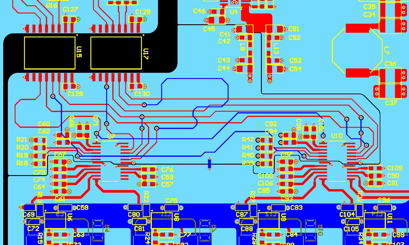 Stack Up: L1 - TOP (RED), L2 - GND (Ligh BLue), L3 - MIX, L4 - MIX, L5 - GND(Purple), L6 - Bottom (Blue)