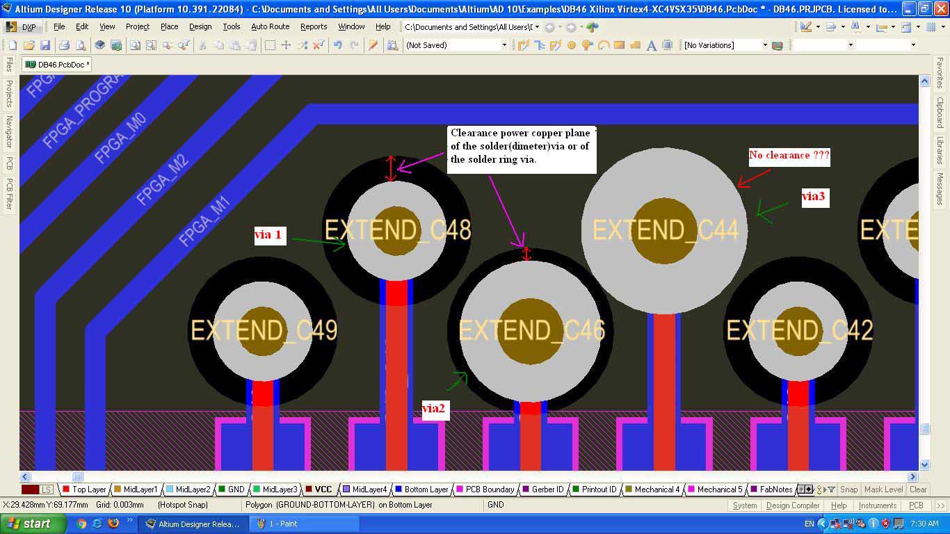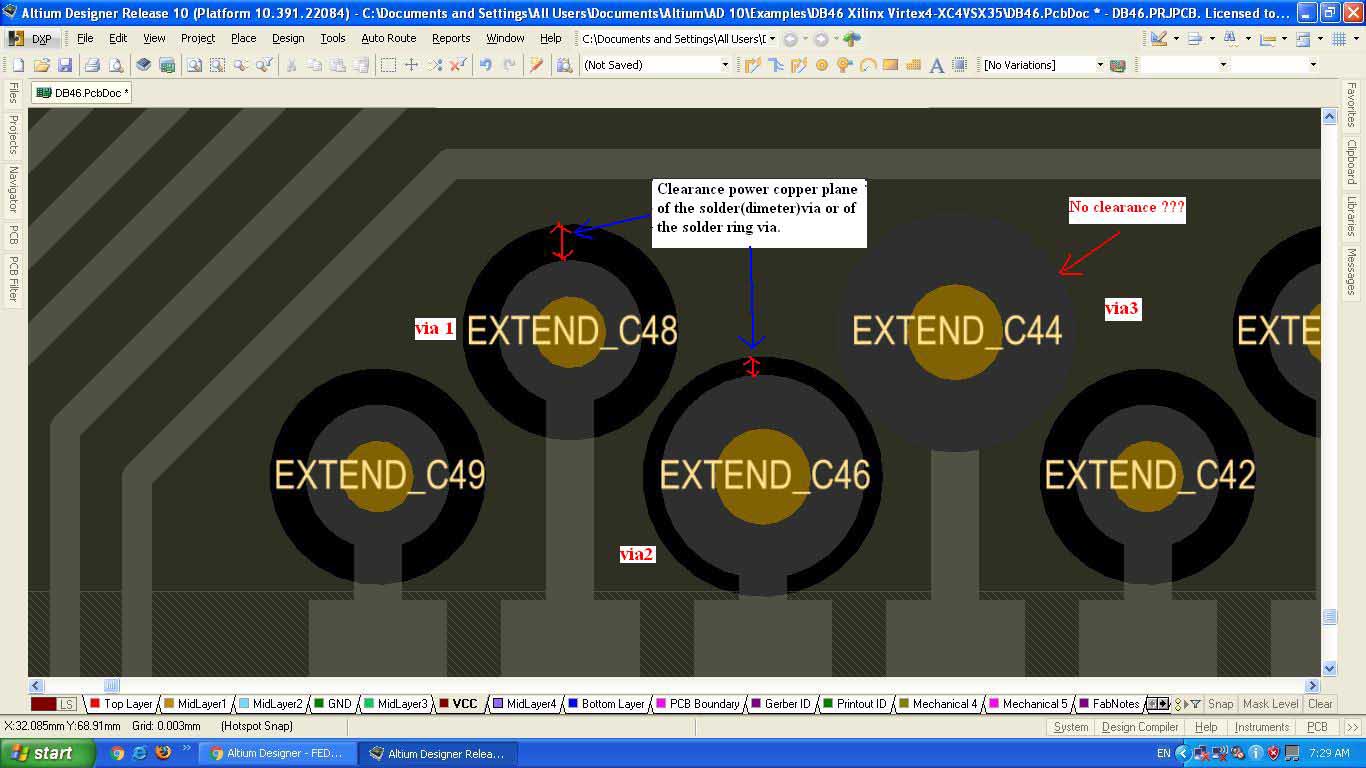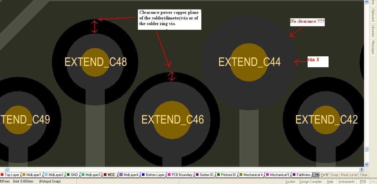 I have multilayer PCB project, that it was created power and GND plane and in the Rules plane clearance is 0.3mm define.