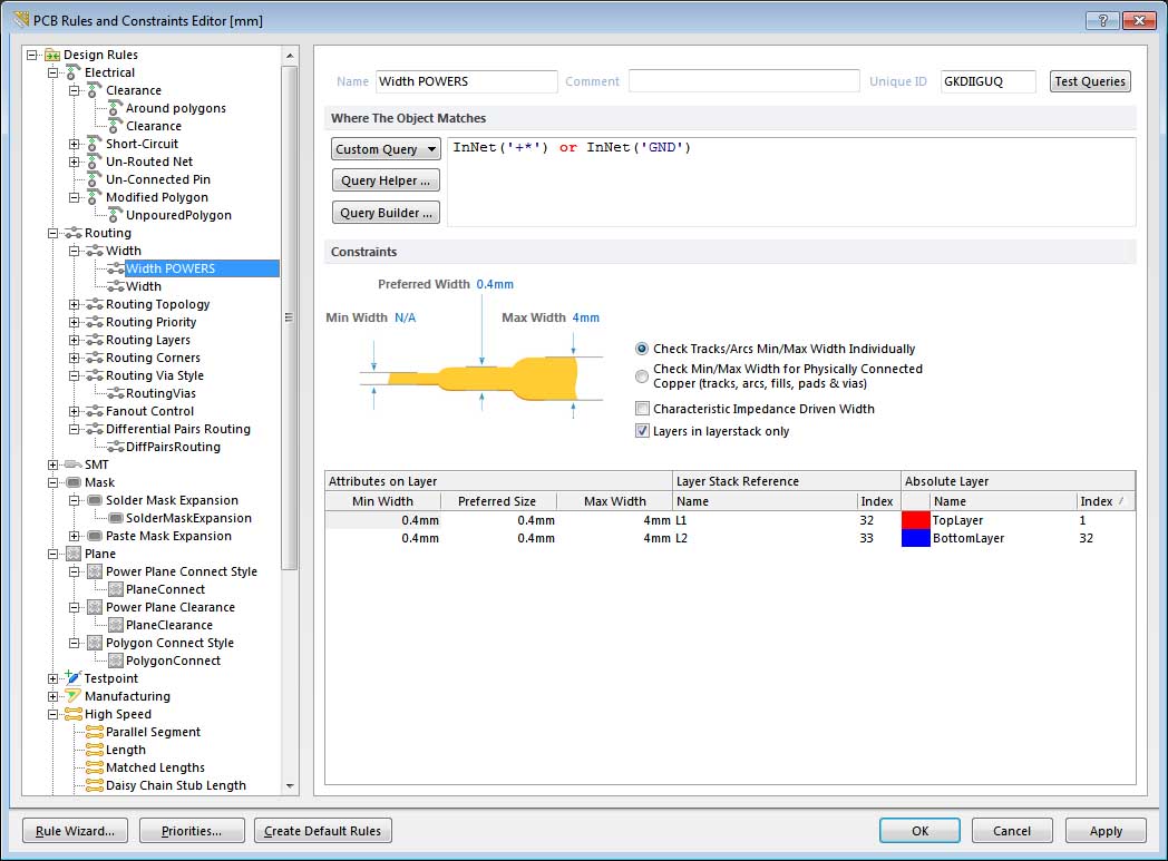 I need to set different track width for different net name, like if i have 10 net name and different track width should be set for each. Please upload a video if possible.
