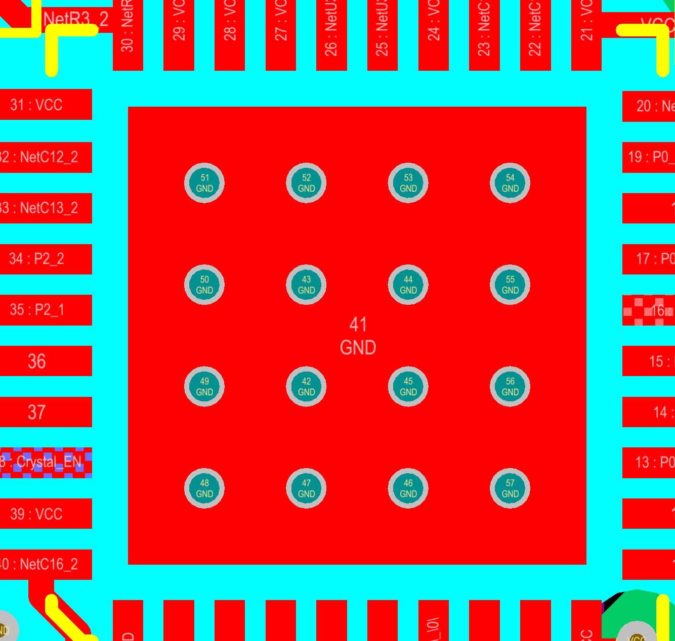 If in in footprint library, I do not place these in library, because I would like to be free to move them in case I need to route under the chip. Some people do it in library, but I am not really sure what they use.