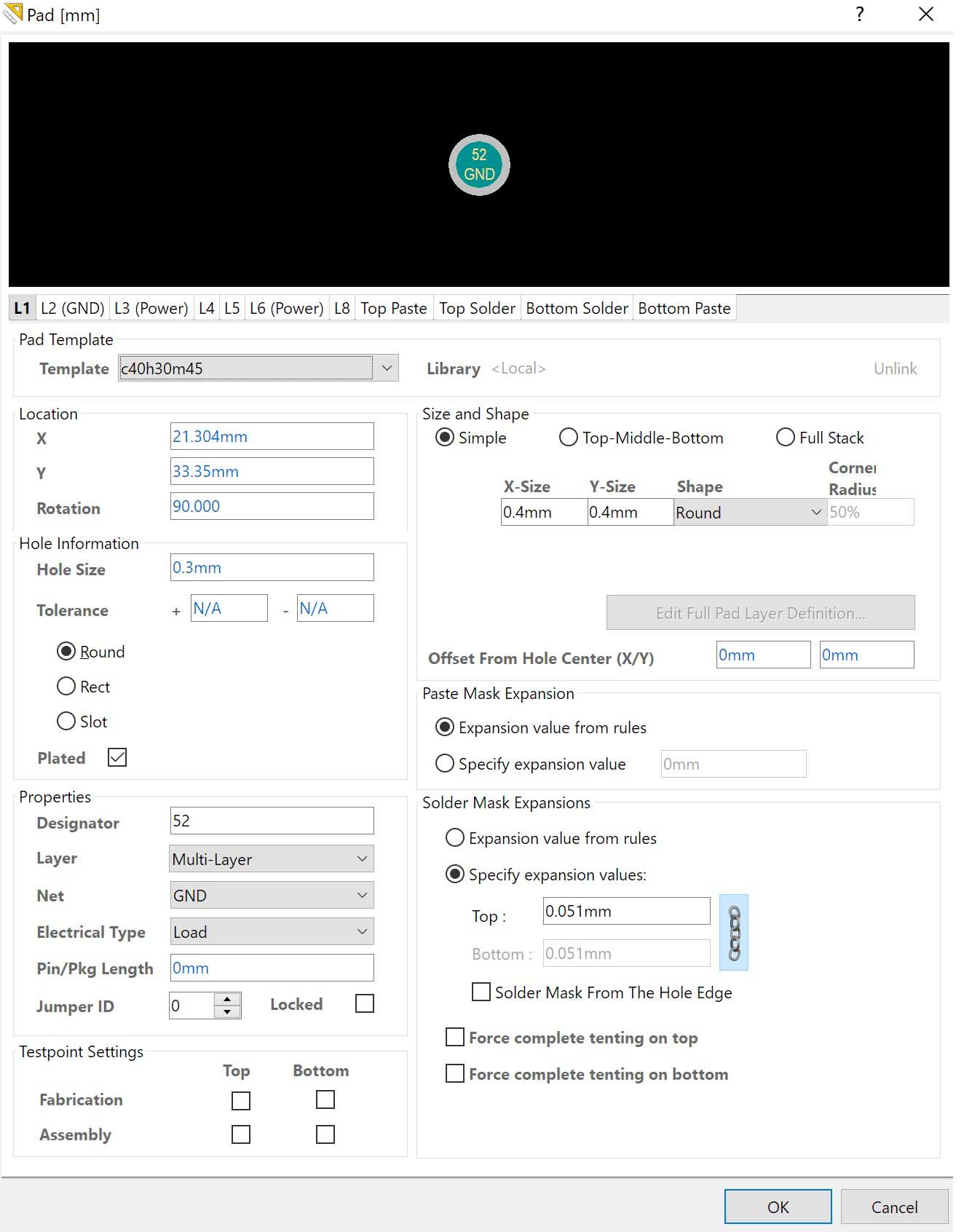 Do you mean place the VIAs/PADs during layout or in footprint library?