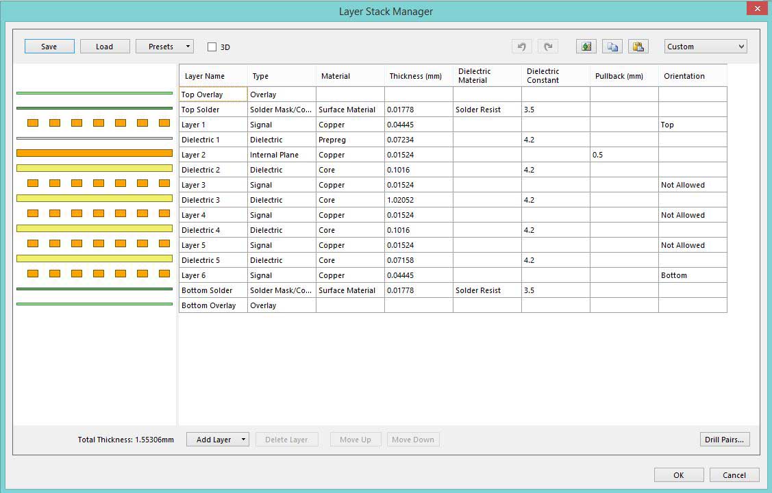 I may use one of the 2 new signal layers for drawing power polygons, and on other, I may route few signals. Actually, I am planning to merge this 4 layer PCB with a 6 layer PCB. When I had gone through this article - "http://www.fedevel.com/designhelp/forum/main-forum/altium/4130-pcb-merge" I came to know that the two individual PCBs should be same in a number of layers, names, and stack-up. This is why as a first step I am updating this to 6-layer PCB. So, I may not use those two new layers much.