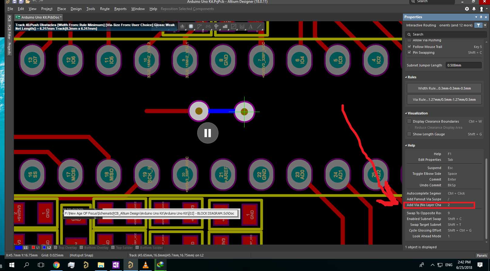 when I try to place Via in AD18 .. It doesn't work ..