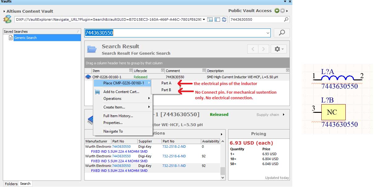 I am using the Altium Vault and I have a 2 part component (an inductor).