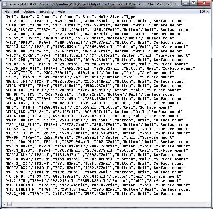 Then, in job file, in Fabrication Outputs -> Test Point Report you can generate something like this: