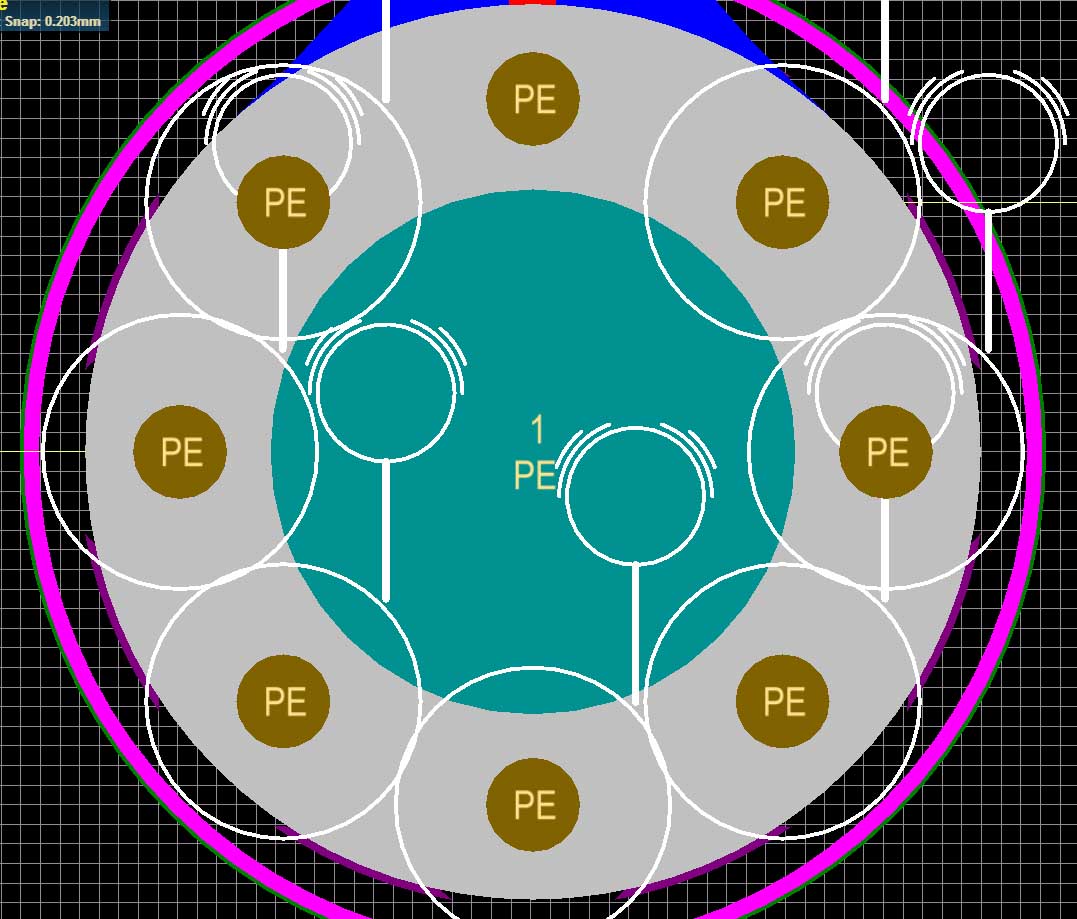 For higher mechanical strength and longer durability, I am going to use a mounting hole with via drilling around, like this photo: