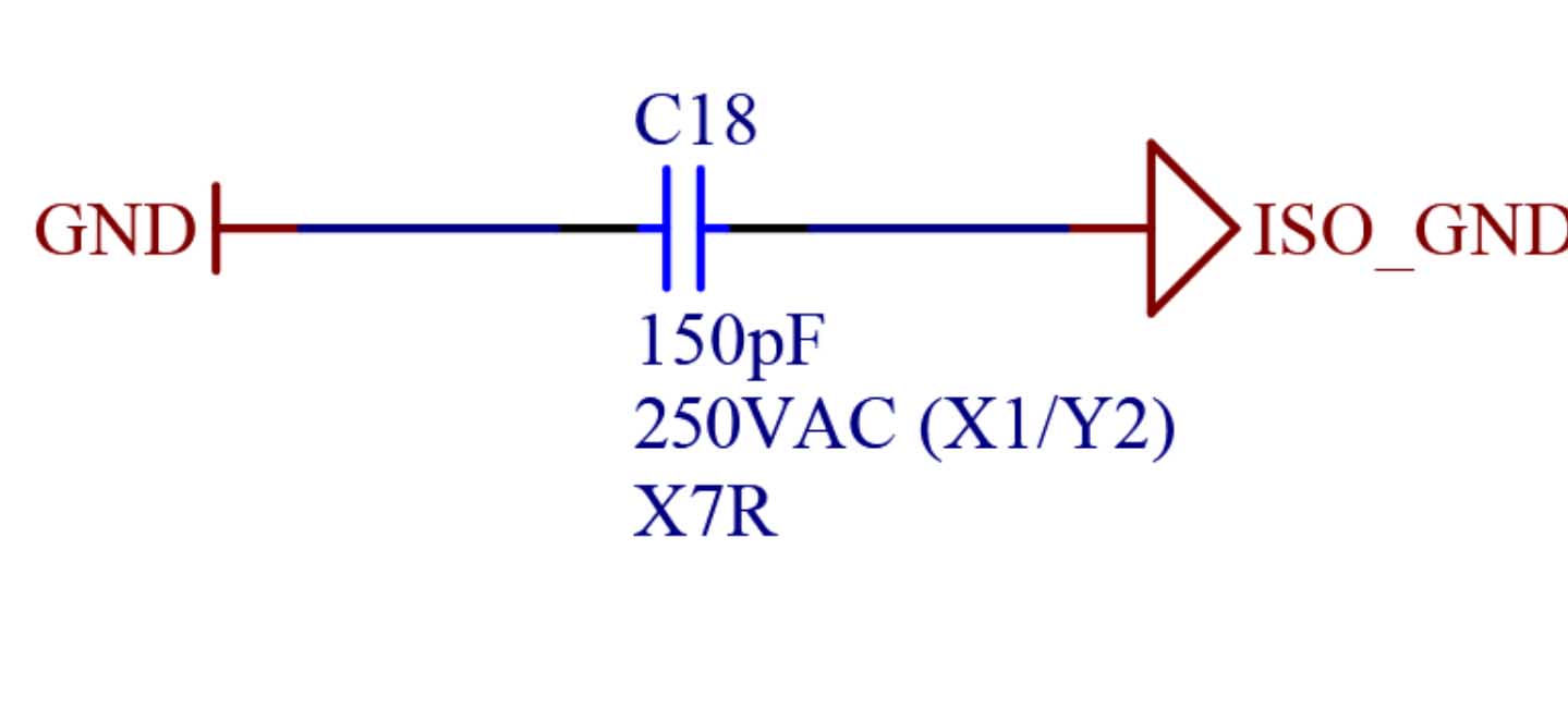 In electrical isolation of part of circuit using isolator IC (Like ADUM4224), I have seen a capacitor placed between two ground, please see the image: