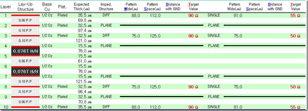 Number of Layers: 10Number of Signal Layers with controlled impedance: 4