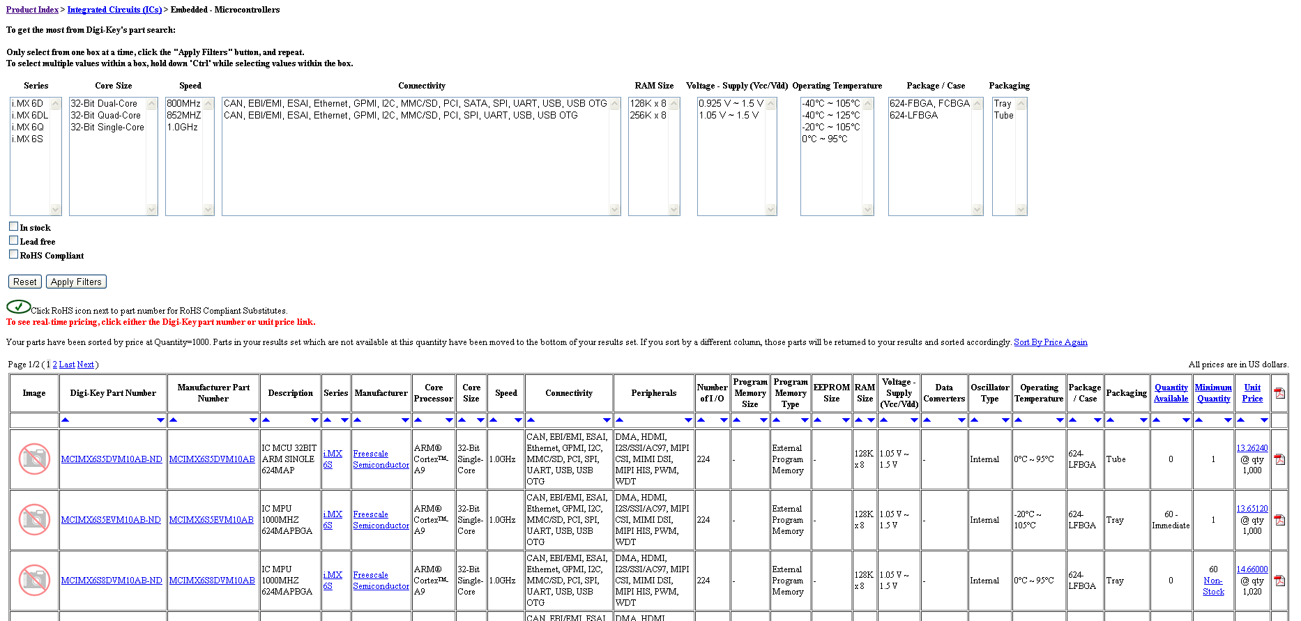 - Category selection e.g. Processor / Microcontroller. Suppliers sometimes mix these chips together, look in both categories.